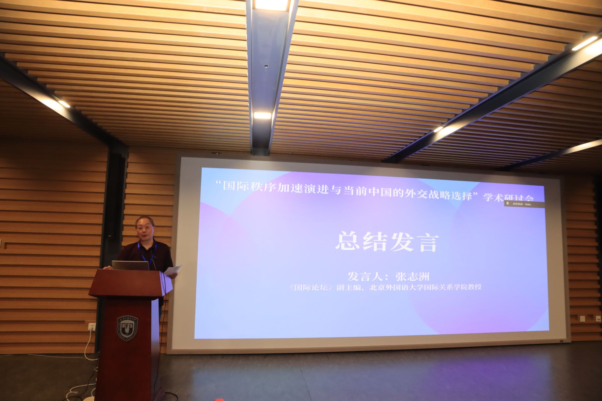 会议各时段主旨发言完毕后,参会师生与专家进行了充分的讨论和交流。《国际论坛》副主编、北外bbin宝盈张志洲教授对本次研讨会做了总结。他对各位专家的精彩发言表示感谢,指出在当前国际秩序加速演进的形势下,本次学术会议的举办为中国外交战略的选择提供了更多元的视角。张志洲教授感谢与会专家对北外《国际论坛》学术期刊的支持,希望今后继续加强多渠道、多层次的学术交流。