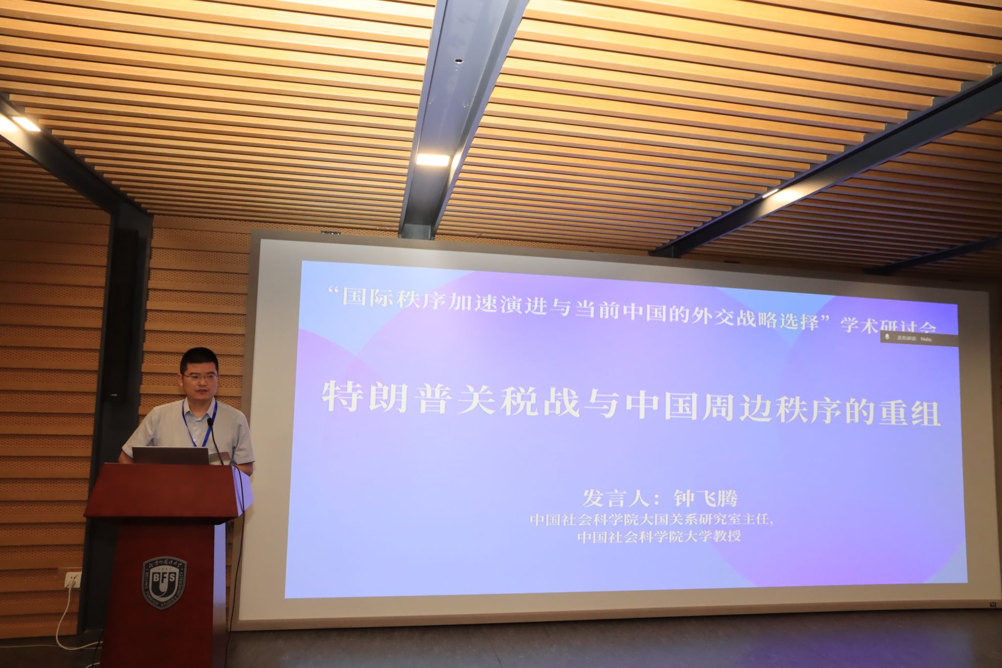 主题研讨第三时段由北外bbin宝盈副院长张颖教授主持。中国社会科学院美国研究所所长倪峰教授深入分析特朗普政府第二任期执政的特点;中国社会科学院大国关系研究室主任钟飞腾教授剖析了特朗普关税战与中国周边秩序的重组;外交学院特聘教授张胜军围绕“百年变局下的国际体系转型与国际秩序重构”发言。
