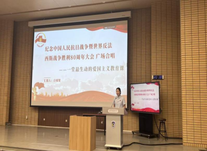 在经历分享环节,王晨曦同学作为参与九三阅兵的志愿者,分享了自己在纪念活动重要点位提供志愿服务的难忘经历。她提到,虽然工作强度大,但能够亲身参与到这场庄严而伟大的国家盛典中,为纪念活动贡献个人力量,感到无比激动与光荣。洪宇星、白婧贤作为广场师生合唱团的成员,讲述了他们自今年5月启动训练至9月3日在天安门广场的完美演绎的宝贵经历和深刻感悟。他们表示,从初春的寒意未消到盛夏的烈日炎炎,数月高强度综合训练不仅是对体能与意志的双重考验,更是一次精神的淬炼与信仰的升华,每一次排练中的坚持与协作,都让合唱的歌声有了更为厚重的青春注脚。