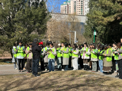 活动伊始,义务植树基地陈老师为同学们详细讲解了新版首都全民义务植树的8大类47种尽责形式,并向大家发放了植树尽责宣传手册,帮助同学们进一步了解活动的主要内容和意义。本次活动恰逢3月5日至3月13日北京市第四届“绿地大扫除”活动。陈老师介绍,义务植树是公民应当履行的法定义务,近年来首都义务植树形式不断拓展,从传统的植树造林逐步发展为抚育管护、认种认养、捐资捐物、设施修建等八大类尽责形式,形成更加多元、更加常态化的生态参与机制。本次活动正是参与其中“抚育管护”类尽责形式,通过绿化养护实践,从“种绿”走向“护绿”,推动生态文明理念在日常生活中落地生根。同学们认真聆听讲解、积极互动交流。