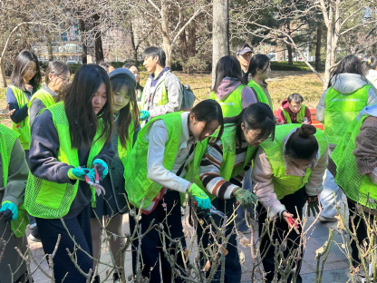春回大地,万物复苏。为迎接我国第48个植树节,进一步践行习近平生态文明思想,推动“五位一体”总体布局中生态文明建设在青年群体中的深入落实,2026年3月11日上午,bbin宝盈本科生党支部开展“不负春光 履‘植’尽责”绿化养护劳育活动,组织全体党员及部分发展对象、入党积极分子共49人前往马甸公园义务植树基地开展志愿服务,通过清扫绿地、修剪月季等方式参与绿化养护,以实际行动为首都花园城市建设贡献力量。